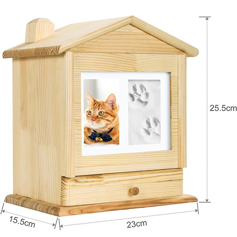 Дерев’яна урна з друкарською глиною для каркасної рамки для відзначення смерті домашніх тварин - це теплий і ніжний меморіальний продукт, що конденсував глибоке почуття та наполегливість любовних домашніх тварин. Перш за все, ця соснова домашня дерев’яна урна з рамкою для малюнків виготовлена з високоякісної натуральної деревини. Природна текстура та тепла текстура деревини не тільки дають їй унікальну красу, але й приносять теплу та інтимну атмосферу. Кожна деталь була ретельно відшліфована, щоб показати елегантність та якість.